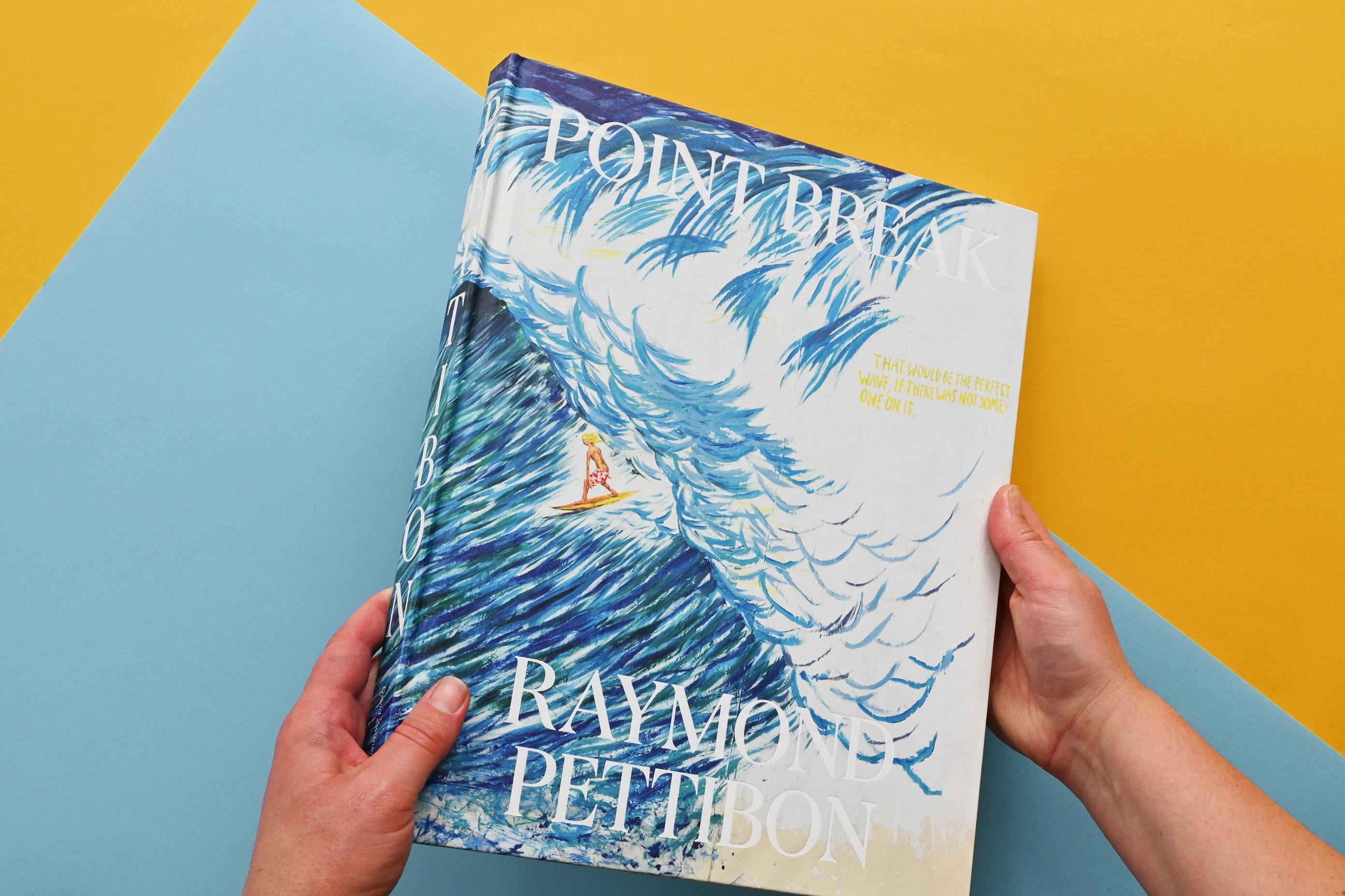 This book spotlights a selection of more than one hundred surfers from the series, from smaller monochromatic works on paper to colorful large-scale paintings applied directly to the wall. For Pettibon’s protagonist in these works, surfing exists apart from all else. Momentarily he achieves sublimity on the wave, distant yet synced with turbulent reality. We are forced to confront our own scale: small and feeble in the face of the power of nature, what is beyond our control. We therefore chose a large format for the book.
